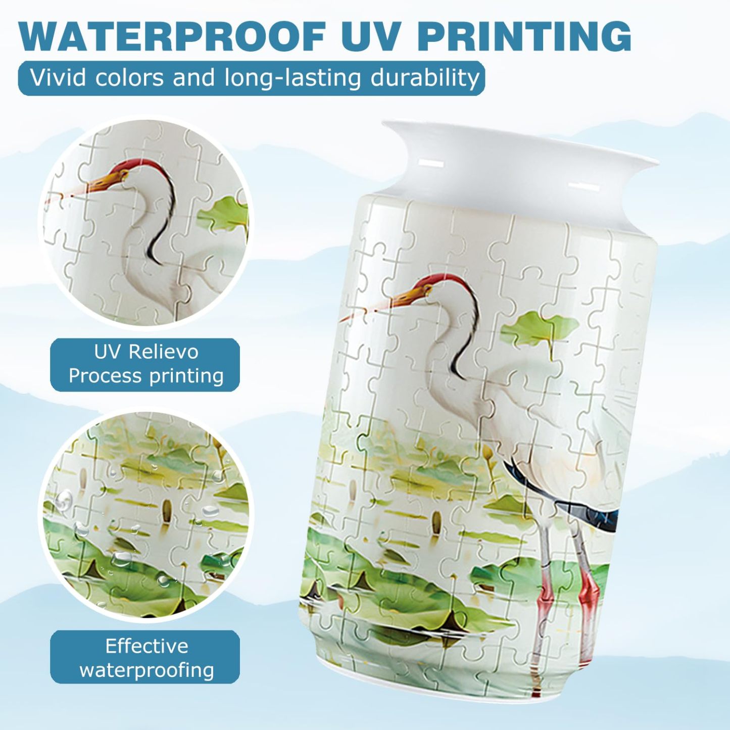 3D Lotus Flowers And Red-Crowned Cranes Style Puzzle Medium Vase- (162 Pieces)